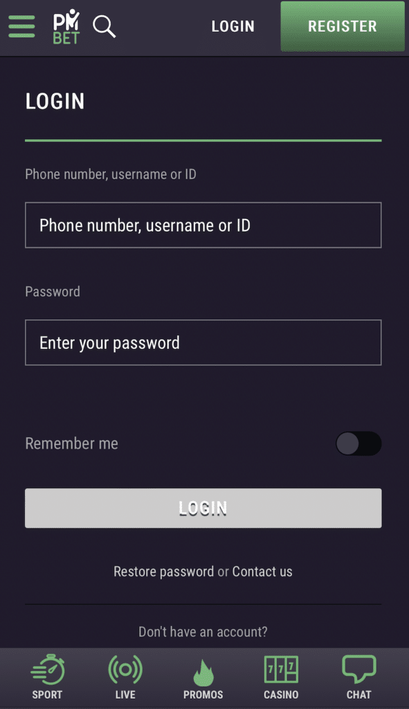 To embark on your betting journey with PMBet TZ, you need to register and create an account. The registration process is straightforward and quick, requiring the following steps: