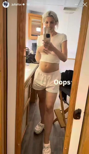 Julia Fox, the 34-year-old Uncut Gems star, recently set off a wave of speculation about whether she’s expecting after she shared a video on Instagram, where she appeared to have a baby bump. In the clip, posted on Tuesday, September 17, Fox stood in front of a mirror wearing a cropped white tank top and white boxer shorts, showing off what looked like a pregnant belly. She cheekily captioned the post with “Oops,” sparking curiosity among her followers.