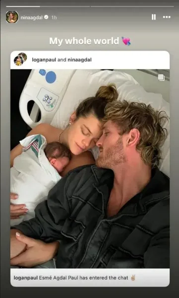 Logan Paul and fiancée Nina Agdal have officially become parents, announcing the arrival of their baby daughter, Esmé, on Instagram this Sunday. Paul, the YouTuber turned WWE star, shared the exciting news with a sweet post captioned: “Esmé Agdal Paul has entered the chat,” accompanied by a heartwarming photo of him and Agdal cradling their newborn.