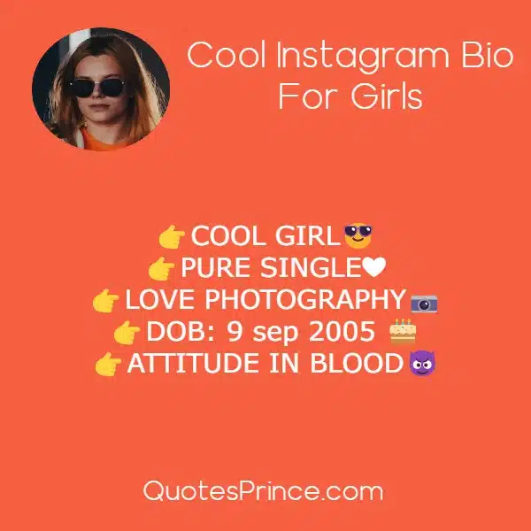 Here, I have shared a huge collection of Instagram Bio For Girls (e.g. Attitude, Stylish, Swag, VIP, Cute, Impressive, Short, Cool, Unique, Funny, Attractive etc.)