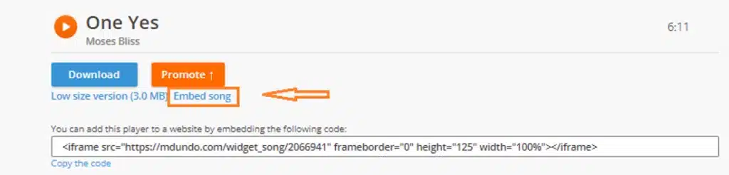 Step 8: Send your song as a Mdundo widget and start earning money.